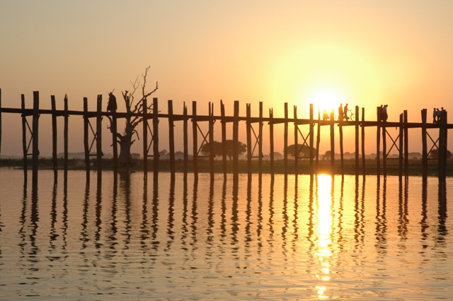 去年的泼水节里,我和家人一起去了瓦城伍奔桥。这名字听起来很奇怪,是译音所以听起来很别扭。也叫情人桥。泼水节的时候在瓦城伍奔桥那边人最多。它是一个很古老的一座桥。下午伍奔桥就像一幅很美丽的画,让人看了都舍不得回去。我们在那里玩要了一整天。