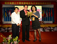 “福”带给我们幸福享乐,“庆”传给我们隆重庆祝,二十周年福庆校庆、迎来了第十届东南亚华文教学研讨会、孔子课堂揭牌五周年。三重欢庆带给学校是一个响亮的喜庆重重日。为校庆中国侨联、国侨办、汉办、华侨大学、北京华文学院、暨南大学、云南大学等.......,都有贺词、贺电及代表前来参加。为校庆增添喝彩!