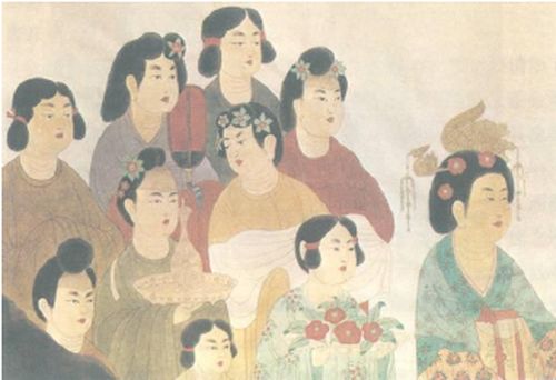 唐敦煌壁画乐廷瓌夫人行香图家属部分(来源于沈从文《中国古代服饰研究》)