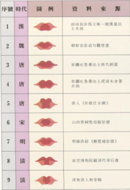 摘自 宋丙玲.中国古代妇女的唇妆[J].文史杂志,2005(03):32-36.
