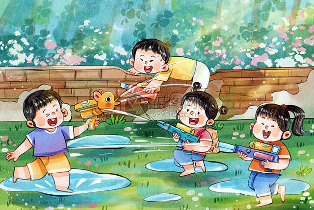 今年的泼水节,我们在自家院子里举办了一场热闹的庆祝。邻居家的小琳和小圆也来了,我们几个孩子兴奋地抓起水枪、拎起水桶,在庭院里追逐嬉戏。小琳灵活地左冲右突,小圆也不甘示弱地起身“还击”。我敏捷地闪身躲过一道水花,清凉的水珠溅落满地。笑声与水声交织,那份纯粹的快乐感染了周围的每一个人。慈眉善目的奶奶站在一旁,手里轻摇着大蒲扇,脸上洋溢着温暖的笑容,不时提醒着孩子们注意安全。