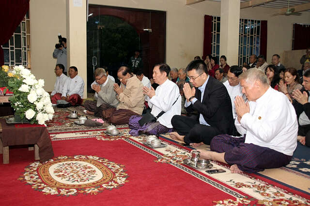 一月八日上午五时三十分,缅华基金会在蒲甘姜士达(Kyansittha)寺庙举行一百零八位高僧诵经祈福大会,缅中友协会长吴盛温昂及常务理事们、人民议会代表吴苏、郭建伟领事主任、檀秘书、缅华社会贤达和知名人士参加祈福仪式,当地缅甸民众也参加了祈福仪式。