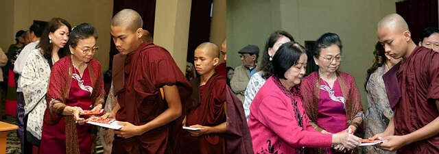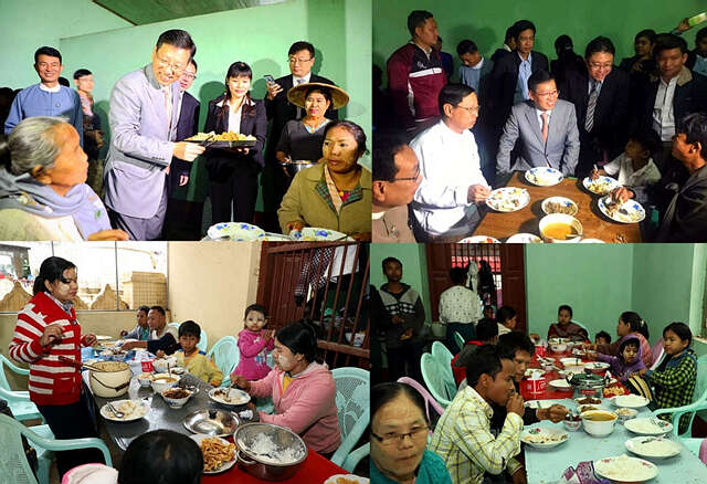 中国驻缅甸大使馆、缅华基金会、瑞丹伦公司准备了丰盛的Stu-di-dha(布施斋饭),共同布袘招待二千名缅甸民众,洪亮大使等到布施场所视察布施活动。