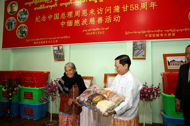 缅华基金会于2019年1月7日组团前往蒲甘良乌市,参加纪念已故周恩来总理访问蒲甘58周年慈善捐赠活动。