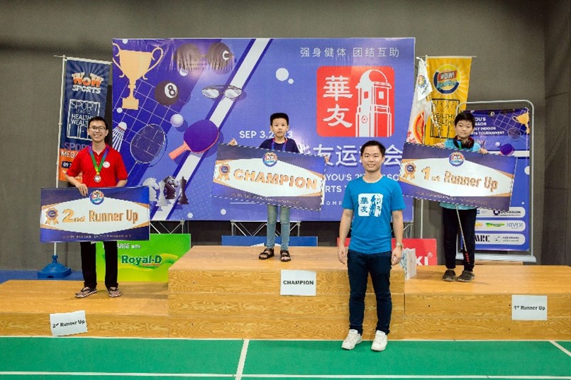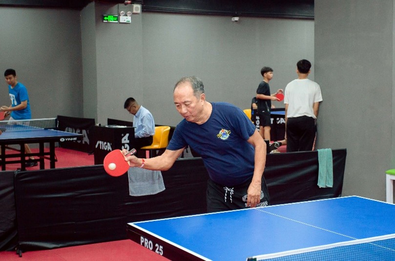 大厅场地内,可爱的小朋友欢快蹦跳,生气勃勃的少年们跳跃嬉闹,成熟健硕的青年们正在挥拍热身,更有几位老当益壮的年长者,穿着各自的队服,在热议交谈着,全体华中校友的蓝色运动衣着,更似蓝海一片,让我赏心悦目至极……。我心潮澎湃,腹里念叨着:Wow ,寂静已久的缅华侨界娱乐活动,复苏有望了!