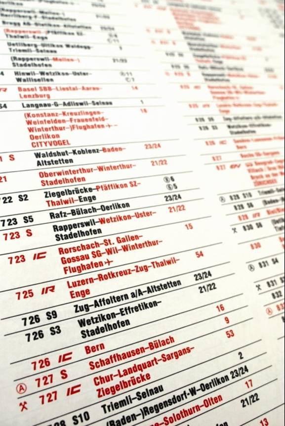售票处免费提供列车时刻表,按照字母排序,一个城市一张表。