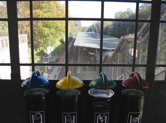 四种颜色,四个投入口,醒目地标有玻璃、纸张、果壳和包装材料,图文并茂,小孩子也不会弄错。