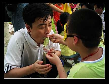 结果:孩子得到的谅解,马上向大人道歉,并高兴的把桌子擦干净。孩子学会宽容。
