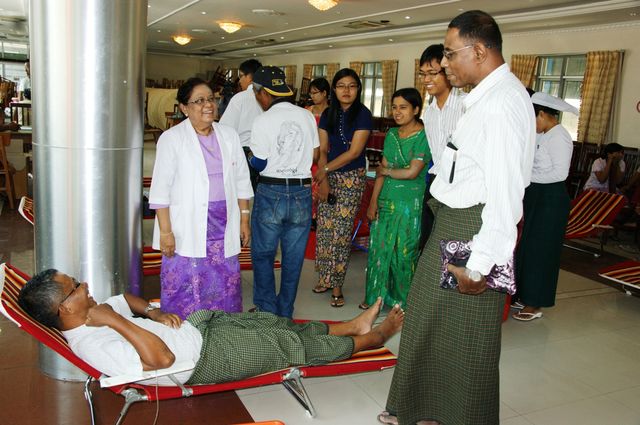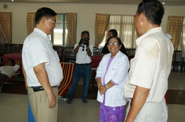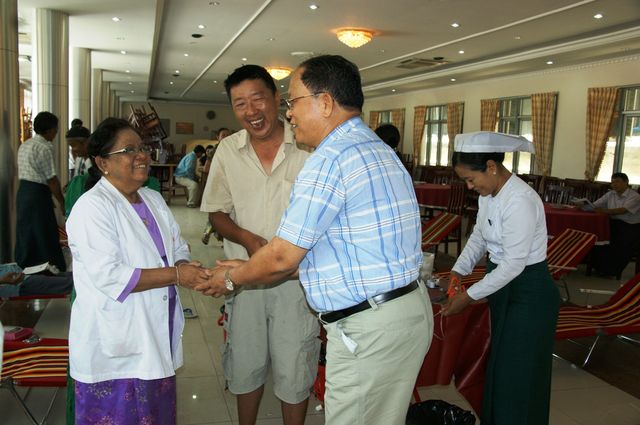 曼德勒综合大医院捐血中心/化验室疾病专科主任钦胜温医生表示云南同乡会举办此次活动非常有意义,现在这个时期正是急需用血时期,此次活动正是雪中送炭,曼德勒中央血库将捐来之血送到大医院各个部门以供急需,也表示感谢曼德勒云南同乡会。