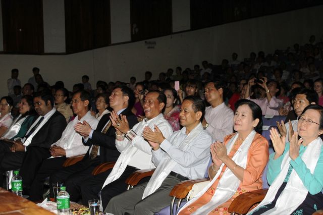 18日晚,缅甸曼德勒省行政首长吴耶敏、缅甸中部军区司令耶昂少将、曼德勒省议会主席、省大法官、等省市政要出席文艺晚会,观看演出。演出节目精彩纷呈,观众掌声阵阵。
