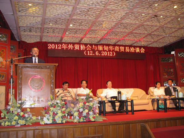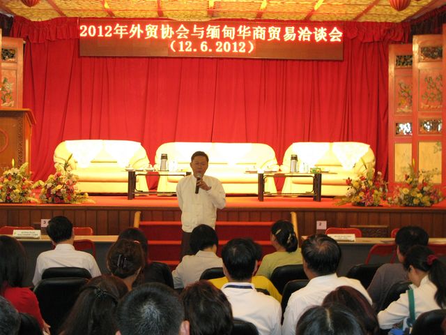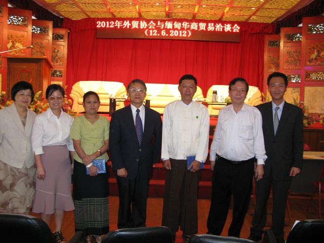 台湾外贸协会代表团与缅甸华商贸易洽谈会于2012年6月12日下午三时在缅甸华商商会大礼堂举行。来自台湾各地共41家公司参加洽谈会,他们包括汽车、电子、家俱、纺织、美容扶肤品、乐器、工业金属、水产饲料、电线电缆、家用影音系统等等。
