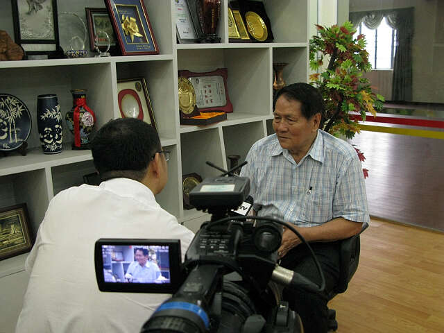 2012年7月20日下午2:30时,中央电视台仰光记者王悦舟访问缅甸华商商会会长赖松生、副会长陈民昆等。