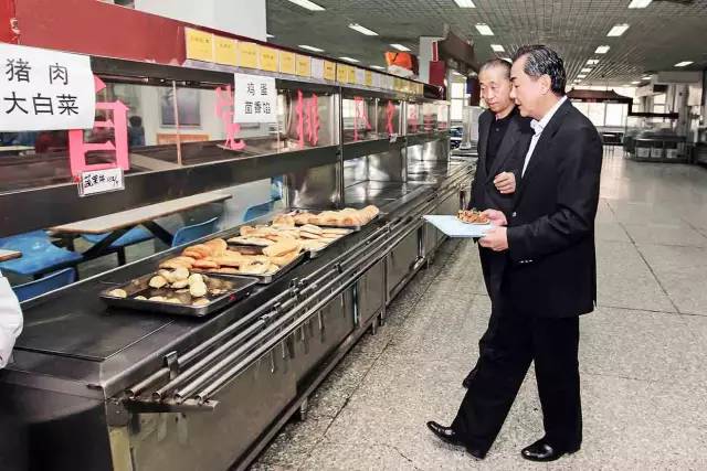 ▲2012 年4 月30 日,王毅在母校二外学生食堂用餐。