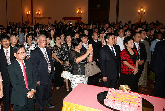 大会开始,首先奏缅中国歌,此后,李军华大使和副总统赛茂康伉俪一齐为中华人民共和国成立63周年切生日蛋糕,此后,李军华大使、赛茂康副总统和夫人以及政府官员等一齐合影、李军华大使也和各国驻缅使节们共同合影。李军华大使设宴款待与会贵宾。晚会于8:30圆满结束。