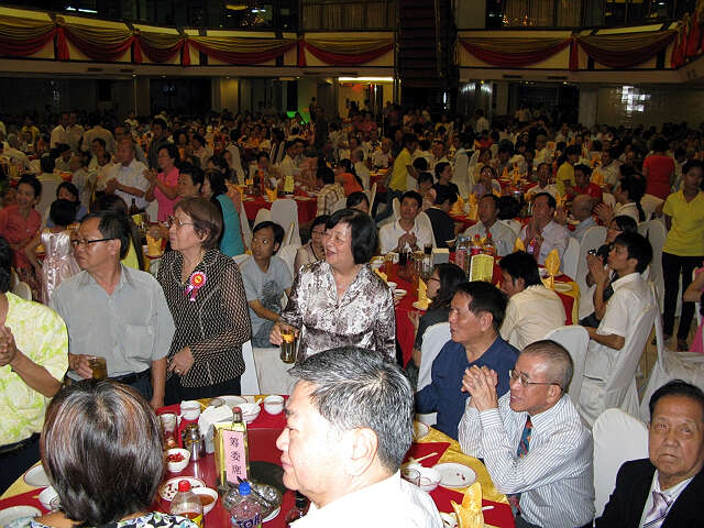 接着,联欢宴会开始,筵开一百多席,由东方语言与商业中心、缅华妇协、缅华汉剧团、九龙堂天后华文学校、舜帝妙善补校、福星学苑、巨轮社、福州三山文艺中心、甘马育闽侨福同仁、海燕关帝庙、甘马育建德分社等团体演出精彩文艺节目,获得在场观众热烈鼓掌。