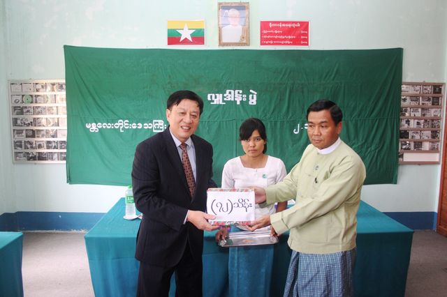 缅甸联邦宣传部副部长吴拜忒接受捐款