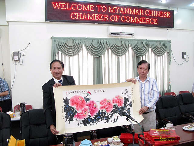 汕头市进出口公司代表团一行七人今日下午3:00时造访缅甸华商商会,受到以赖松生会长为首的理事们热烈欢迎。宾主对共同关心的问题进行深入交谈,并互赠礼品。