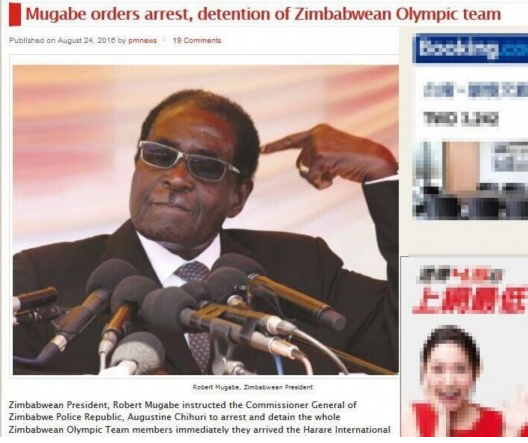据尼日利亚媒体PM News网站报道,穆加贝(Robert Mugabe)下令该国警察总长逮捕扣押津巴布韦奥运代表团。代表团23日一抵达首都哈拉雷国际机场立刻被捕。