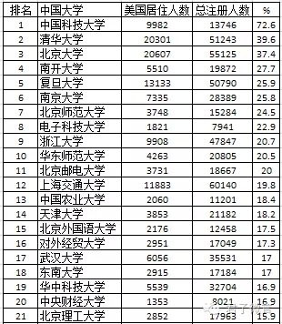 这个排名真实反映了中国各高校毕业生留在美国的情况。尽管并非人人都有领英帐号,但学校与学校之间会不会在领英注册的差距应该是不大的。