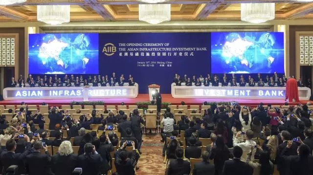 亚洲基础设施投资银行开业仪式在北京举行,来自57个创始成员国的代表共同按下启动键(1月16日摄)。新华社记者 谢环驰 摄