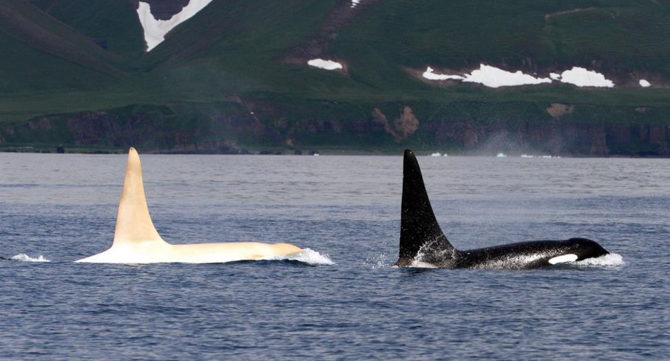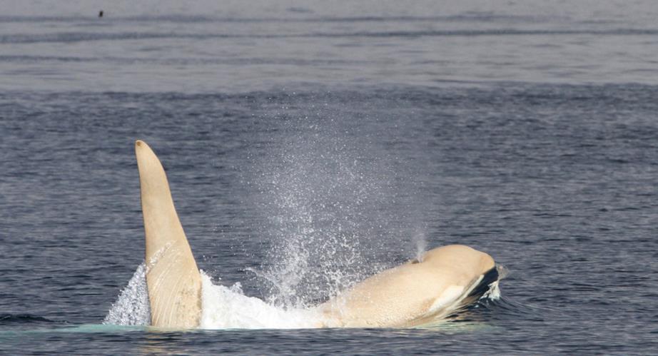 一头被命名为“冰山”的罕见白化虎鲸再次被科学家们发现。“冰山”上一次被目击还是在2012年春季,之后,海洋动物研究者们一直努力想确认它是否还活着。完全白色的虎鲸个体出现概率只有万分之一。