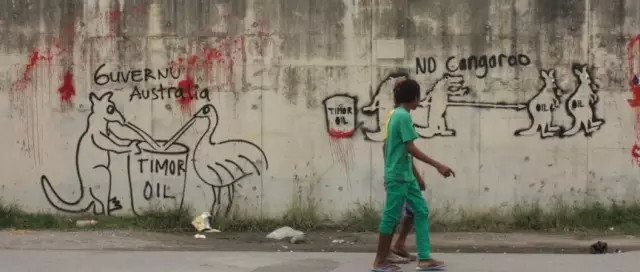 图为东帝汶街头当地人斥责澳大利亚偷走东帝汶资源的涂鸦