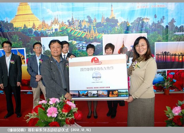 厦门缅甸归侨联谊会有近500名的在册会员,我们选择在每年4月中旬的星期天,即缅甸泼水节期间召开联谊大会。在年会上,我们的理事,摄影爱好者、口腔医院副院长许德文,自费展示个人的缅甸风光照片。这件事启发了我,在我们的会员当中,不乏摄影爱好者,能不能将年会上的缅甸风光展示,办成面向本市的摄影展,“独乐乐不如众乐乐”。这个想法,得到常务理事会的认同,并开展了征稿活动,筹备了近一年的时间。我们得到了市侨联、区侨联和各基层侨联组织的大力支持,同时也得到厦门市图书馆和华侨博物院鼎力相助,将摄影展列入公益活动并参与了各项筹备工作。
