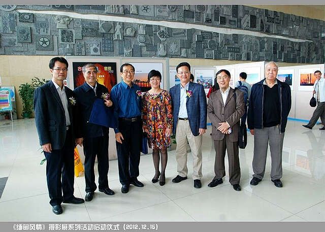 缅甸归侨联谊会张永发理事,对摄影展开幕式相当给力!推迟一天去香港参加南中校友会年会,还请来他的两位前雇员义务担任迎来送往等礼仪工作,以及摄影展现场的讲解。他本人在启动仪式现场,即拍照又摄像,忙得团团转。