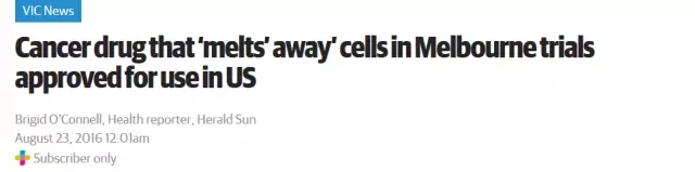 根据《Herald Sun》8月23日最新报道,在墨尔本开发和试验的一种新型治疗癌症药物在美国监管方面传来好消息:一种能够“融化”某些血液肿瘤细胞,治愈癌症的药物已被批准!可以上市!