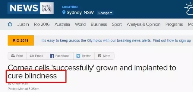 据澳大利亚官方媒体ABC报道,来自墨尔本的研究人员表示他们已培养出眼角膜细胞并成功移植,可以彻底治愈失明!