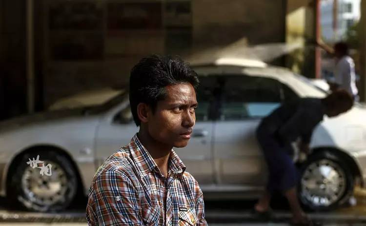 索索的老乡、另外一个缅甸人也在这家洗车行打工。在中缅边境口岸云南省瑞丽市,许多缅甸青年在此从事体力劳动,进入了洗车、木工等行业。