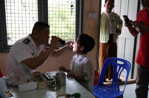 护航编队访问期间,编队指挥员拜会了缅甸军方相关领导和仰光省主要领导,两军官兵进行参观交流、足球友谊比赛等活动,并派遣慰问小分队走访了仰光丁茵孤儿院200名小朋友,与孩子们开展丰富多彩的联欢等活动。