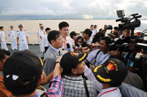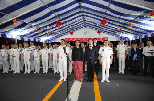 9月30日至10月4日,中国海军第二十三批护航编队结束了在亚丁湾的护航任务,归国途中应缅甸方面邀请,编队中的湘潭号及舟山号导弹护卫舰抵达仰光迪拉瓦港,开展为期5天的对缅访问。这是中国海军护航编队舰艇第二次访问缅甸。9月30日,中国驻缅甸大使洪亮及缅甸船坞基地司令敏乌少将、海军基地司令昂佐莱准将在迪拉瓦港迎接了护航编队官兵一行,并对湘潭舰进行了视察。中国驻缅甸使馆外交官和家属、华人华侨、中资企业代表、缅甸海军官兵及中缅媒体近400人热烈欢迎中国海军舰艇访问缅甸。