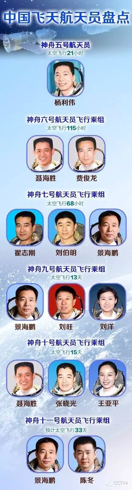 随着神舟十一号的发射成功,中国自2003年起,共有11位航天员登上过太空,他们是国家的骄傲,是民族的骄傲,更有甚者他们是一个时代的记忆。下面就让我们看看这些航天英雄,是否也能勾起您当时的心跳。
