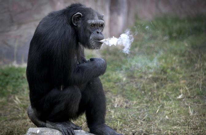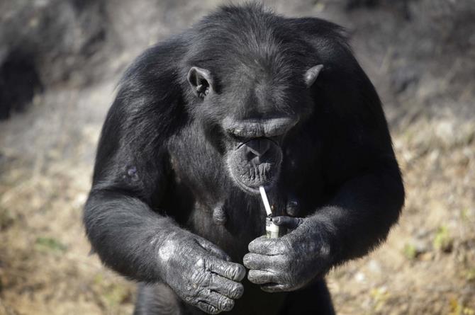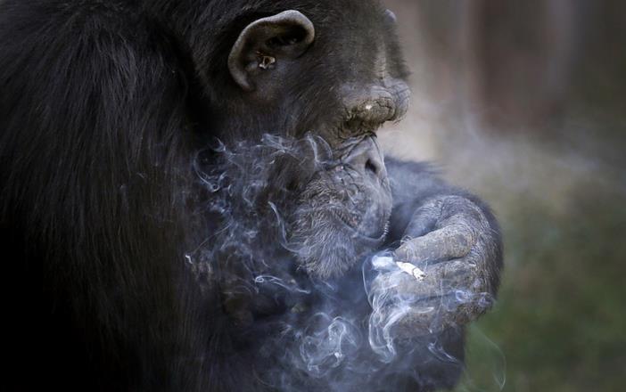 这不,朝鲜动物园里的一只猩猩每天都要抽一包烟,真是一个名副其实的“老烟枪”,并且动作娴熟 。