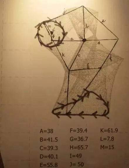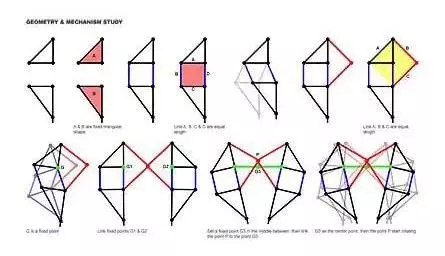 并且每条线的长度都是固定的,十三条线,对应十三个数字。Theo Jansen将它称为“13个神圣数字”。