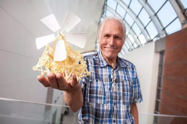 Theo Jansen从小就对物理与艺术有极大的兴趣,经常参与艺术和科技的项目,80年代因“飞行UFO项目”而成名,被媒体誉为被喻为“现代达芬奇”!