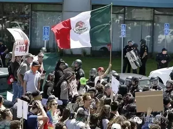 2016年3月11日芝加哥反特朗普游行中,拉丁族裔抗议者高举墨西哥国旗并践踏美国国旗,标榜对母国的忠诚和美国的否定。这些行为都获得了部分美国政客的支持和吹捧。