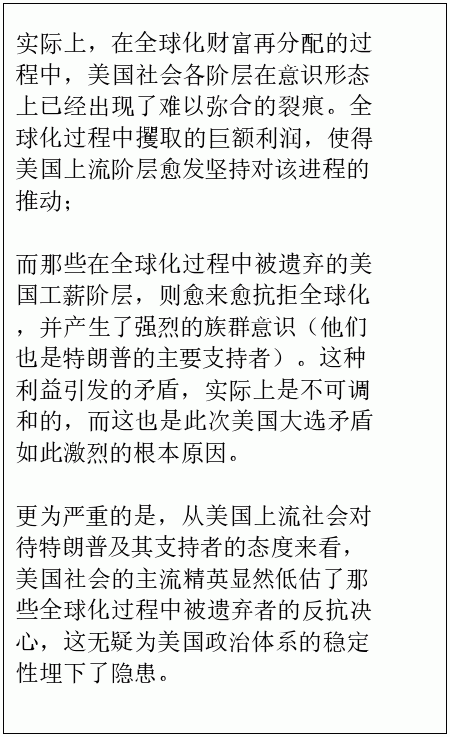 最重要的是,美国的社会共识和意识形态体系正在全球化的冲击下崩溃。