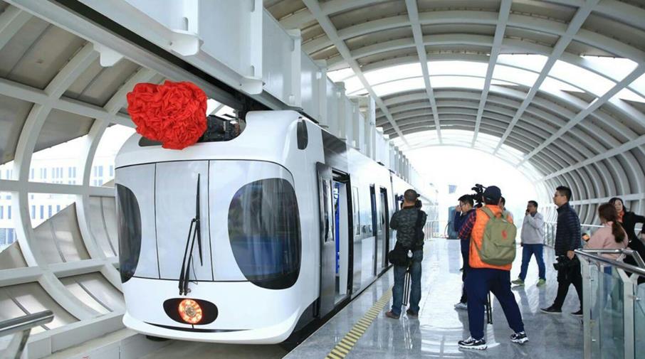 世界首条新能源空铁成都试跑 时速近60公里(组图)