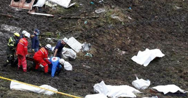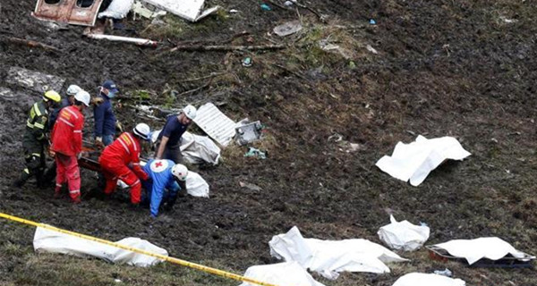 载巴西球员飞机坠毁 大批遇难者遗体被找到