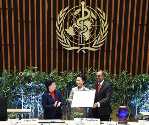 彭丽媛出席世卫组织亲善大使任期延续颁奖仪式
