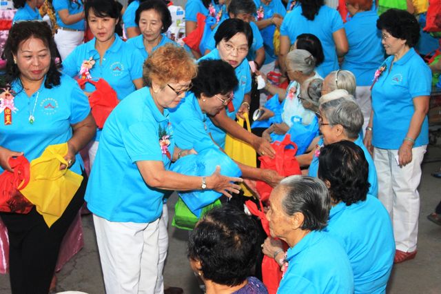 大会上曼德勒妇女联谊会同仁们向30多位80高寿老会友赠送礼品,向年老会友们传达了温馨的祝福合深切的关爱。曼德勒华侨妇女联谊会91岁的伍惠云老主席还上台讲话。获得了大会热烈的掌声。大会上还穿插了抽幸运奖活动,令现场充满了激情及欢乐。