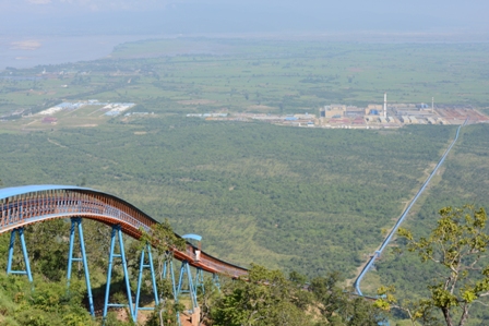 答:(微笑)这也是被经常问到的问题。其实我们工厂与其他工厂大不相同!在环保方面,没有任何问题。比如:莱比唐铜矿那里,由于技术的需要,必须采用硫酸等化学物品,于是土壤受到破坏!我们工厂,根本不存在这样的问题。而且工厂也很重视环保问题,一切设备都是先进的。(他指着高耸入云的大烟囱)你们看!我们的大烟囱,从来不会吐出黑烟!相反只有白烟!什么是白烟?这是蒸汽!除了蒸汽,没有排出任何污染环境物!而且工厂还设有净水厂,我们用的水,包括洗澡用水,都是PH7(矿泉水,似乎有点夸张?)!周边村子全部收益!