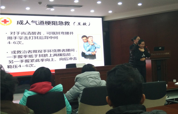 随着学院外教和留学生队伍的不断壮大,为保障外教和外国留学生在华工作、学习和生活的安全,同时加强对外教和留学生这类特殊人群的应急知识培训,学院外事办公室本年度特别制定了针对在校外籍人员的安全知识系列讲座计划,本次急救知识讲座主要涵盖了心肺复苏术和气道梗阻急救方法。