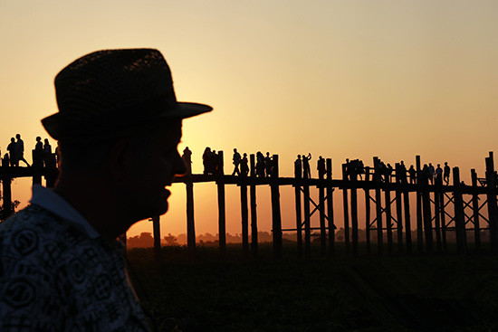 位于缅甸阿马拉布拉城附近的世界最长、最古老的柚木桥——乌本桥。(摄影:涂赟)