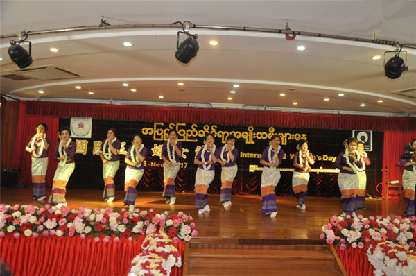 2017年3月8日星期三上午10时,曼德勒妇女慈善会于金多堰大礼堂举行庆祝“国际三八妇女节”活动。以曼德勒省省长夫人Dr. Yu Yu May为首的省政府妇女代表、金多堰慈善总会、金多堰妇女慈善会、云南同乡会、福建同乡会、广东同乡会、多省籍同乡会、果敢会馆、华侨妇女联谊会、福建妇女慈善会以及云南会馆健身中心、晨运健身中心、皇西健身中心、东昇健身中心、62条健身中心、高尔夫球健身中心、新城健康中心、真善美、果敢妇女会、妇幼健身中心、新城友谊健身中心等各主要妇女社团代表近600人欢聚一堂,共祝节日。