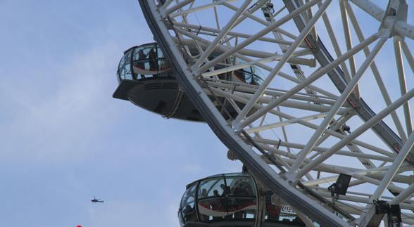 直升机空中盘旋 “伦敦眼”上 很多游客在客舱中等待2、3个小时后才被分批疏散