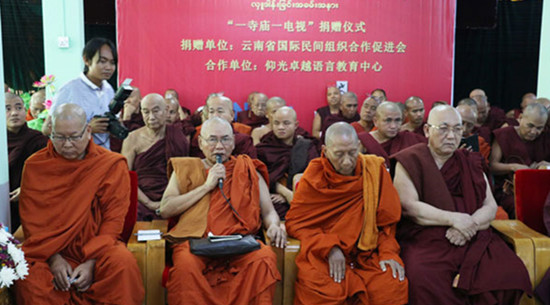 此次云南民促会为仰光地区一百家寺庙捐赠了电视机、天空网卫星电视接收器并支付三年卫星电视的收视费。据了解,仰光地区共有228家寺庙开设了学校,由宗教部在228家寺庙中挑选了其中的100家寺庙接受捐赠。