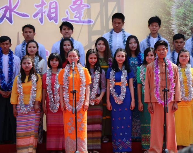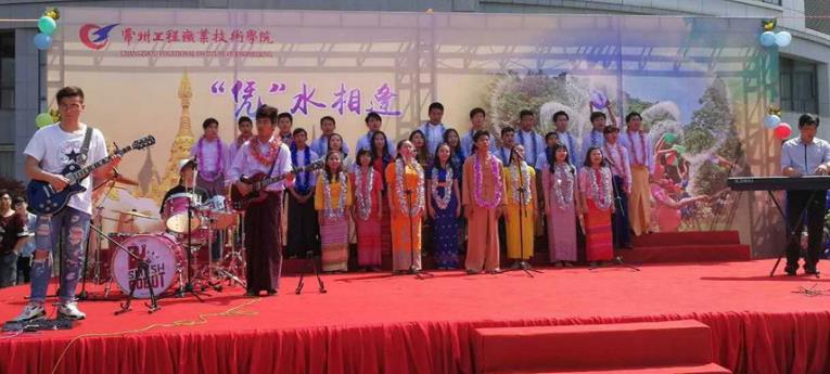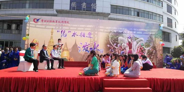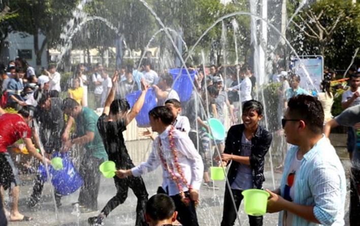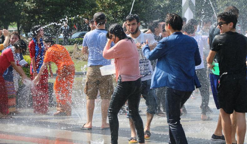 为促进中缅文化交流,帮助缅甸留学生更好地融入校园生活,4月15日下午,国际交流学院主办的首届泼水节在学院图书馆北侧馨园广场举行。学院领导吴访升、洪霄、潘玉琴,国交院、团委等职能部门及各二级学院相关领导,省内各兄弟院校留学生代表,常州市“一带一路”战略研究院老师及我院全体留学生、部分师生约300人参加了此次活动。